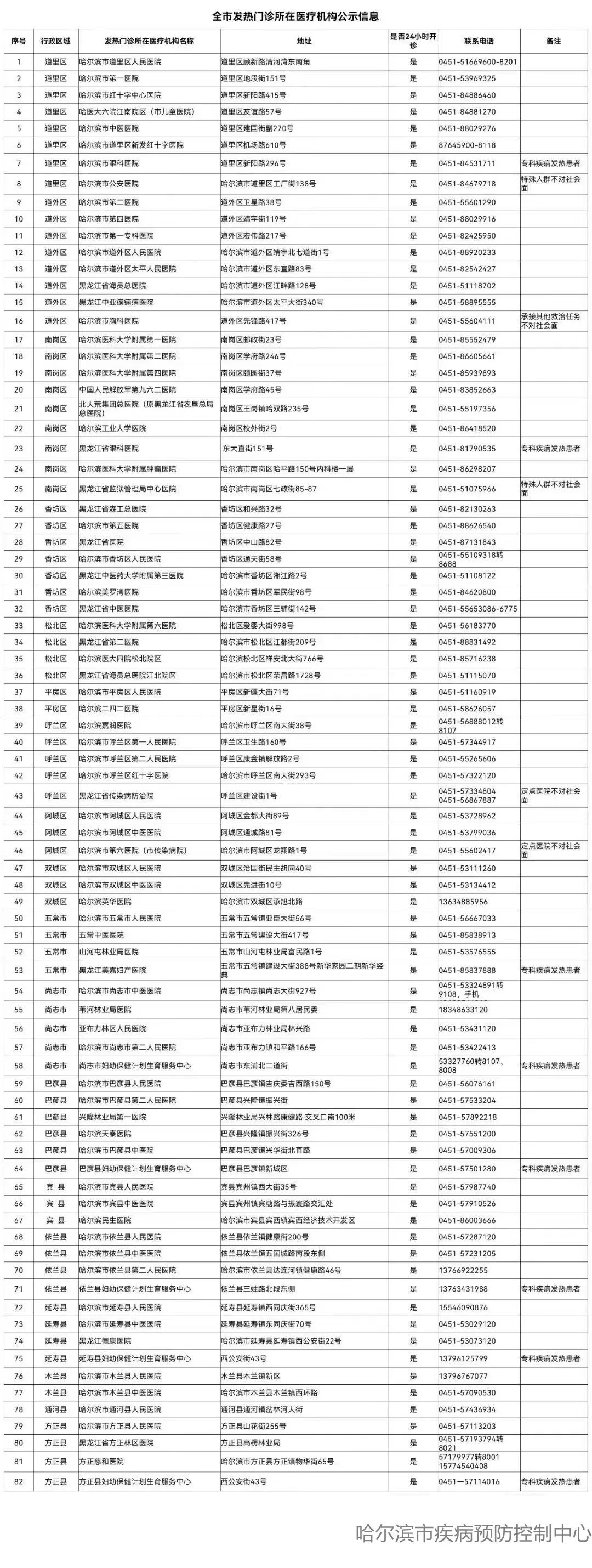 哈爾濱這82家醫(yī)療機(jī)構(gòu)設(shè)有發(fā)熱門診,具體地址→