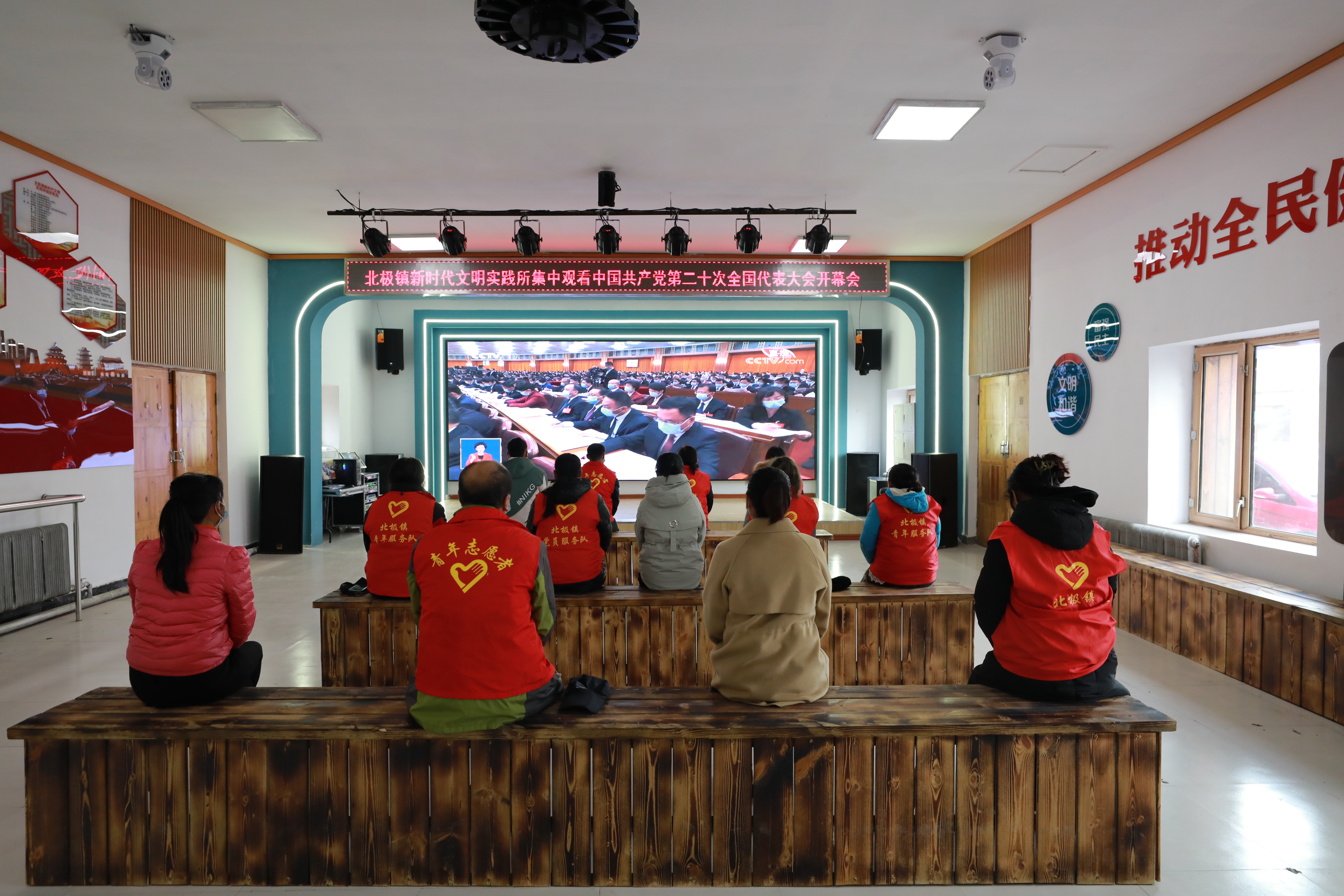 △黨員干部、志愿者、村民在北極村新時(shí)代文明實(shí)踐所收聽(tīng)收看黨的二十大開(kāi)幕盛況